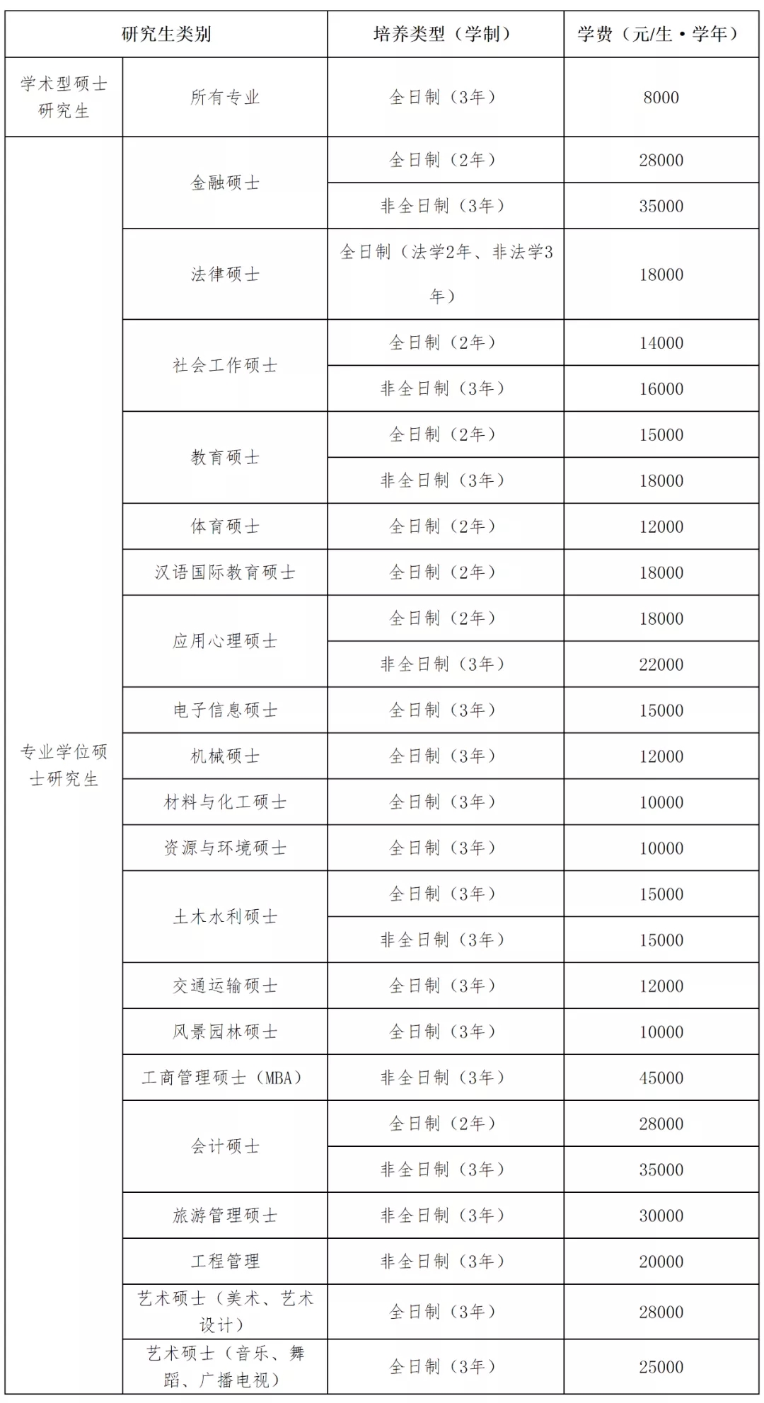 注:1、未标注“全日制”或“非全日制”的专业及领域,默认为只招收全日制研究生。